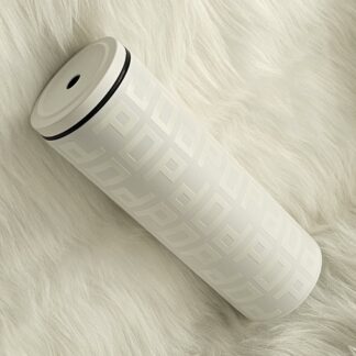 แก้วเก็บความเย็น Monogram ชื่อตัวเอง (English) แก้วสีขาว พาดลายสีขาว ไวท์ออนไวท์ 600 ml.