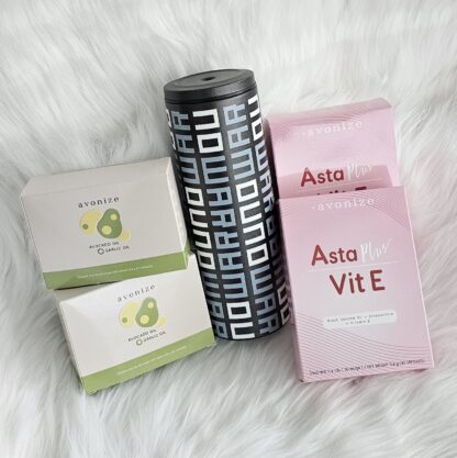 โปรพิเศษ แก้วเก็บความเย็น พาดลาย no war สีขาว และเทาอมเขียวฟองคลื่น + Avonize Avocado Oil Plus Garlic Oil 2 + Avonize Asta Plus Vit E 2