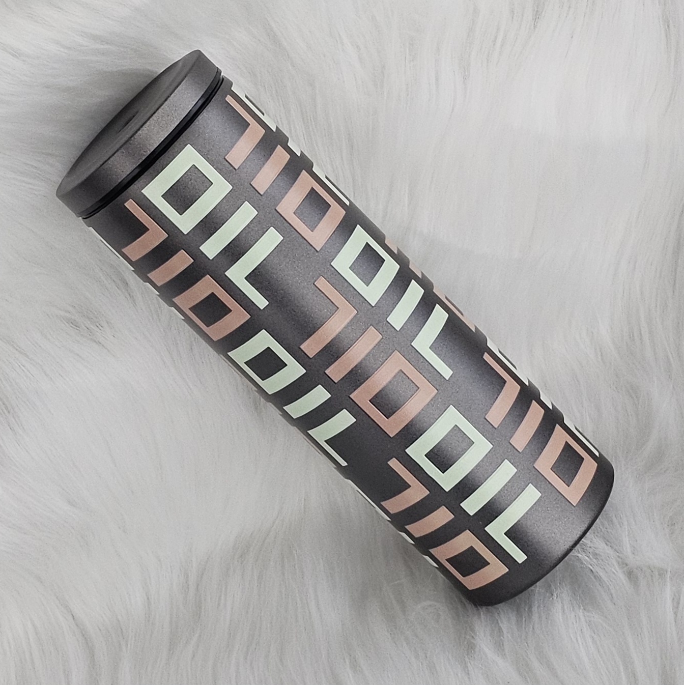 แก้วเก็บความเย็น Monogram ชื่อตัวเอง (English) แก้วสีดำ พาดลายสีอะโวคาโด้ซอฟท์ครีม 600 ml.