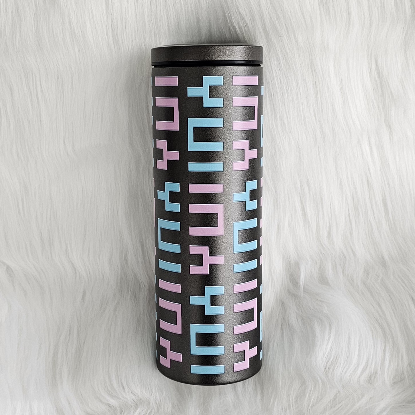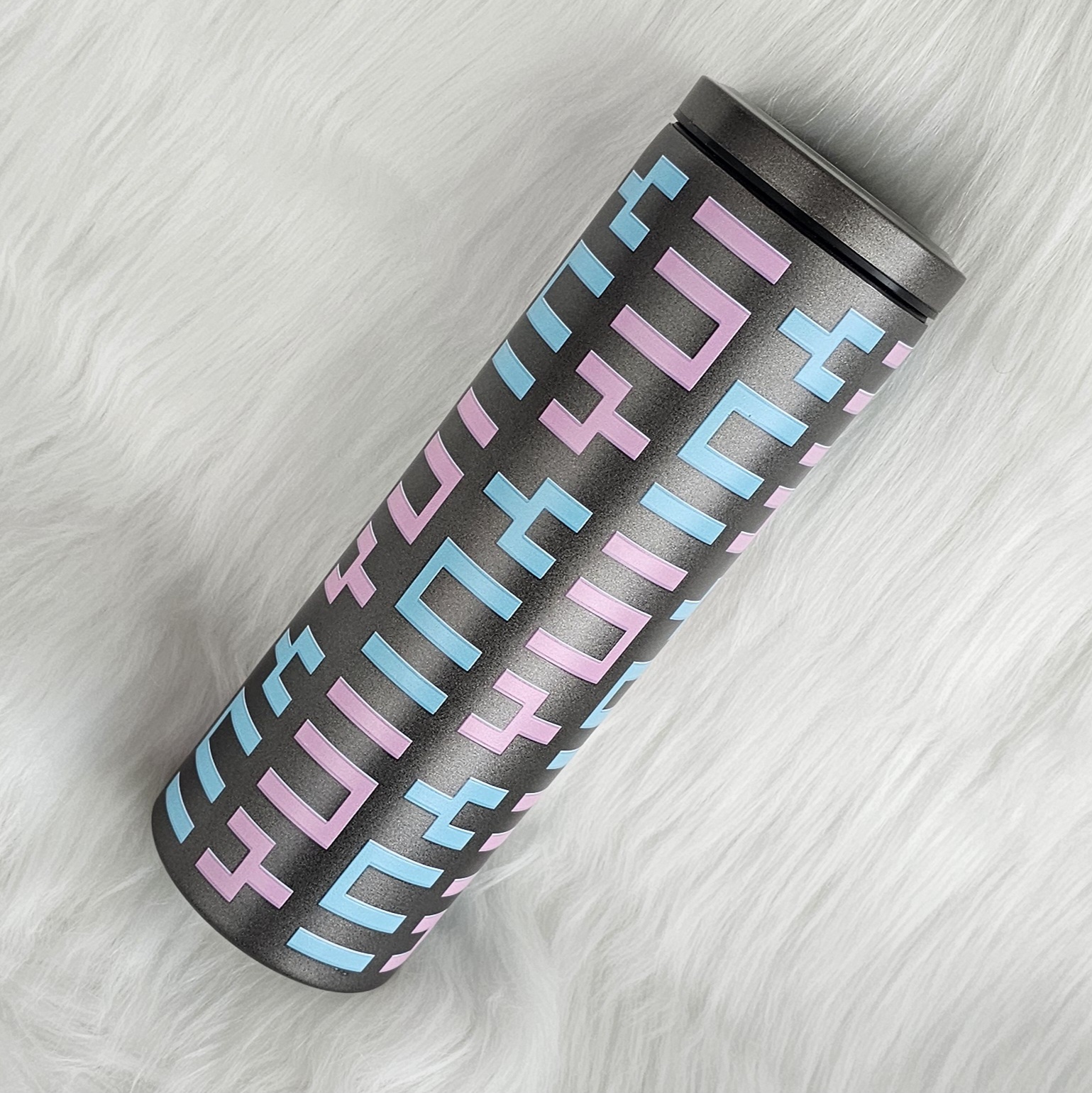 แก้วเก็บความเย็น Monogram ชื่อตัวเอง (English) แก้วสีดำ พาดลายสีฟ้า ชมพู 600 ml.