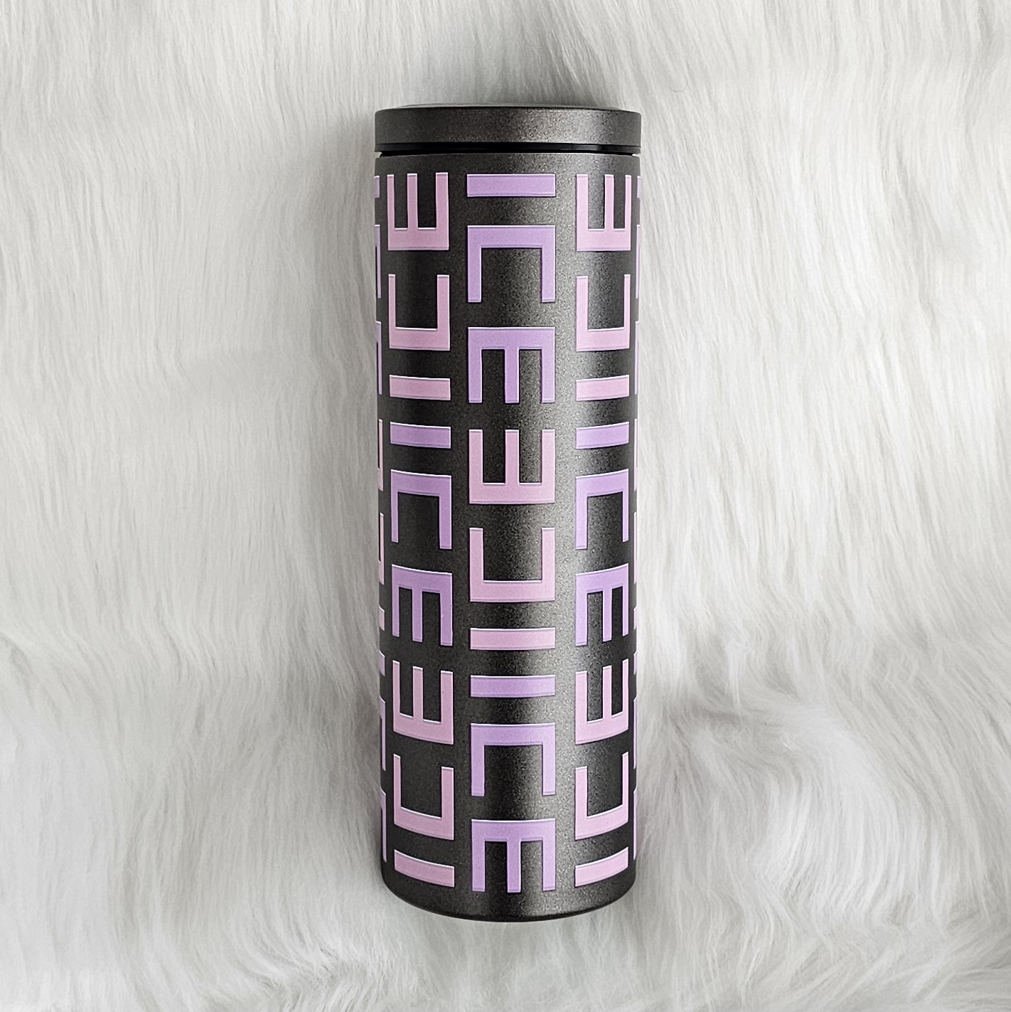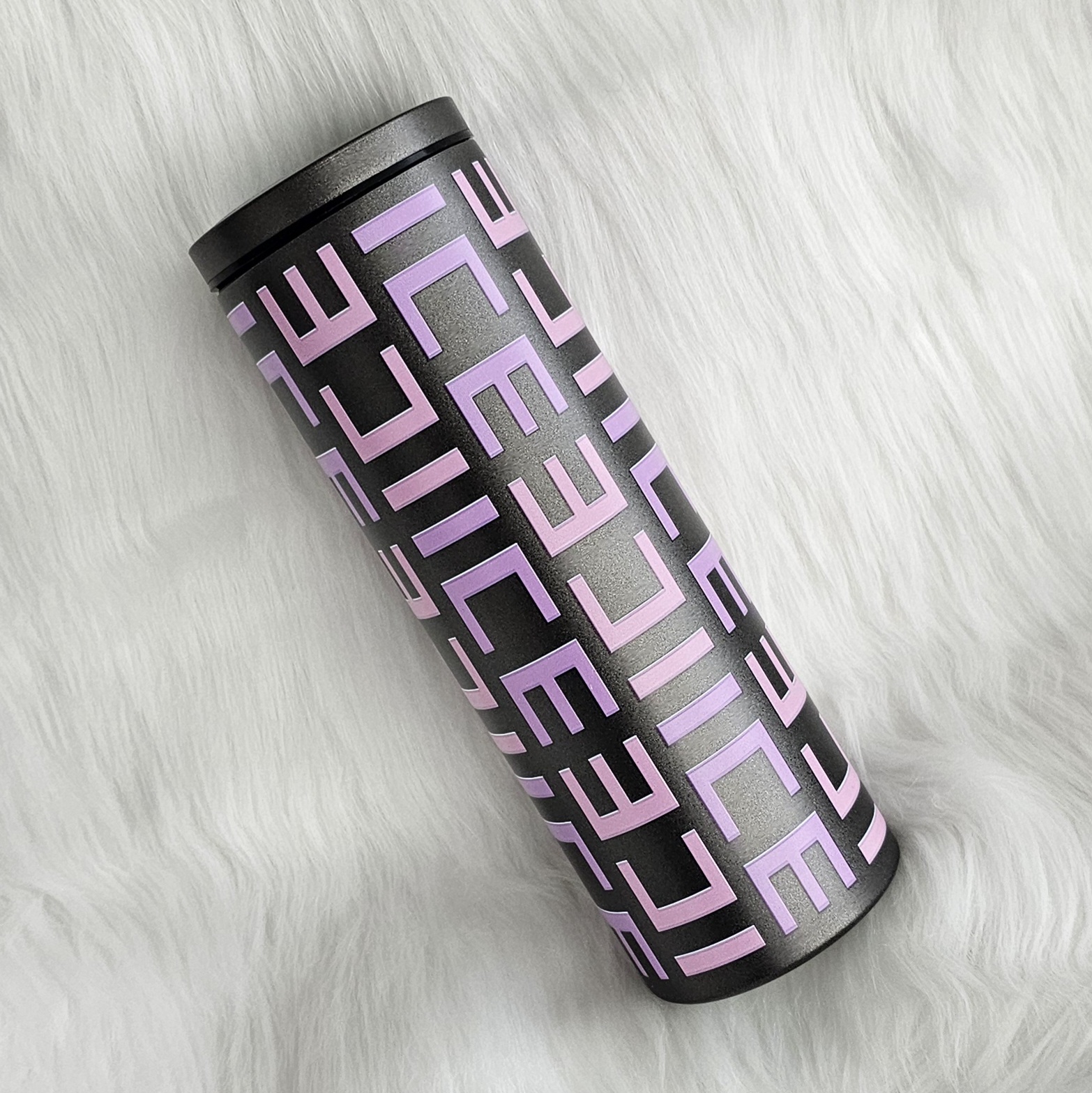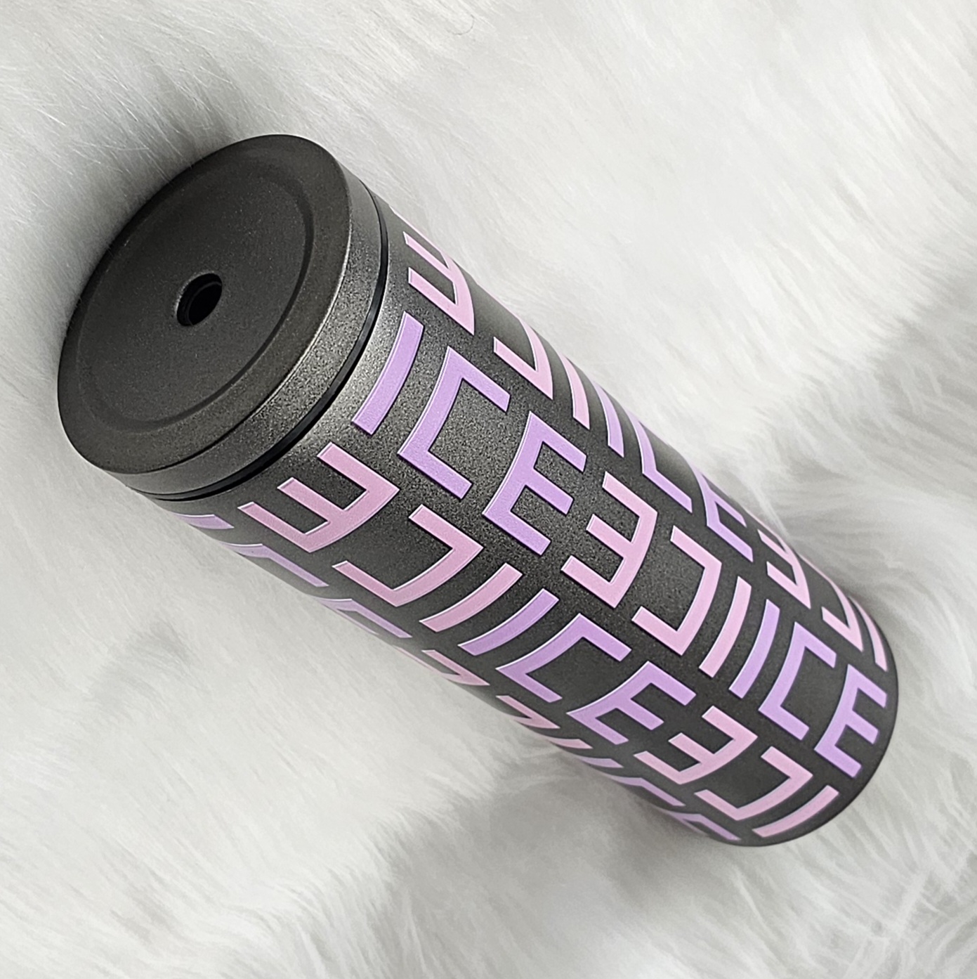 แก้วเก็บความเย็น Monogram ชื่อตัวเอง (English) แก้วสีดำ พาดลายสีม่วง ชมพู 600 ml.