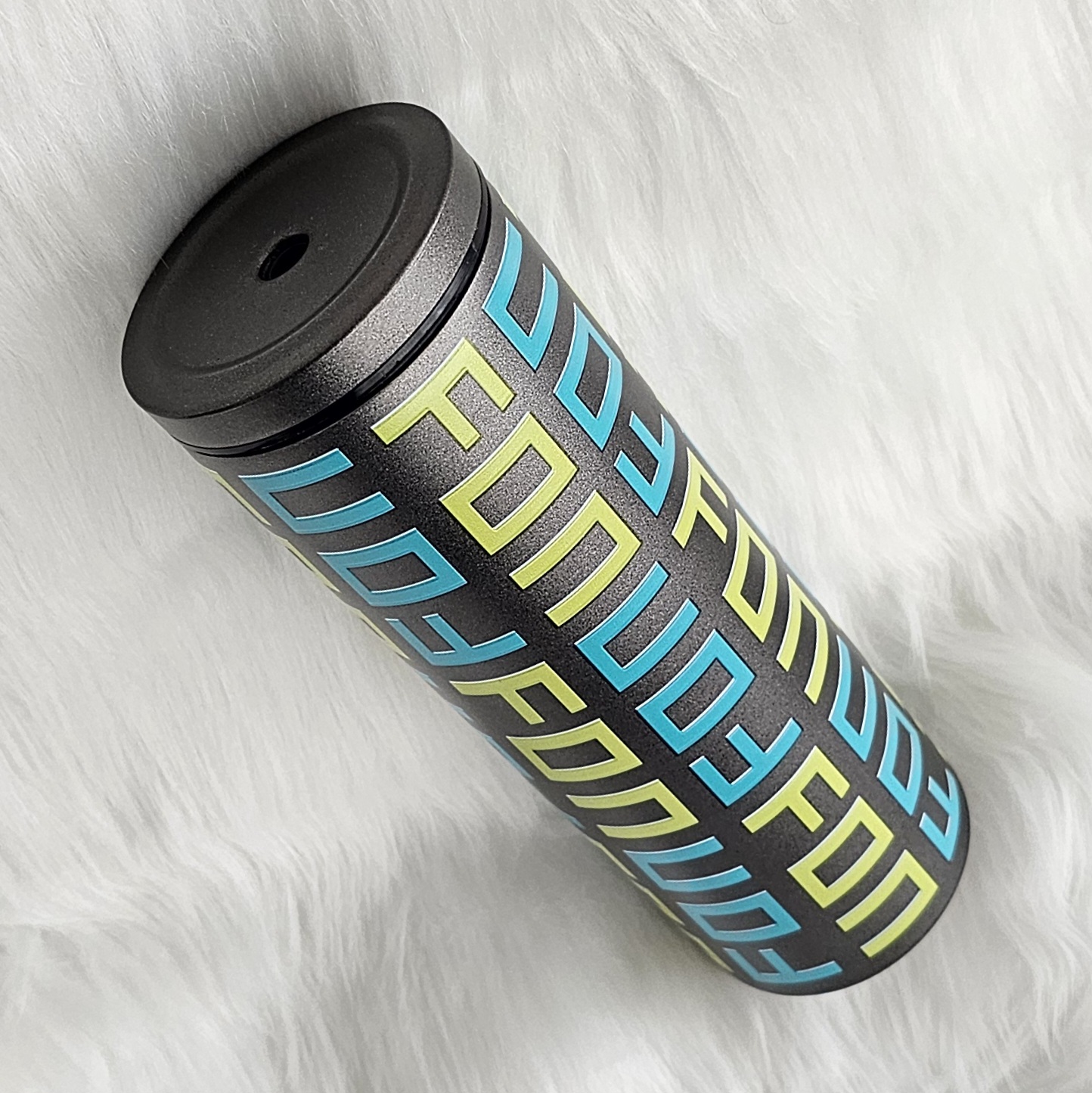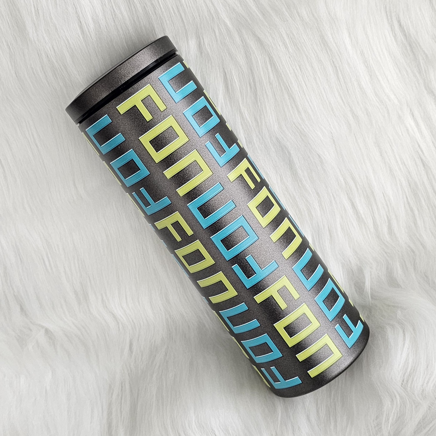 แก้วเก็บความเย็น Monogram ชื่อตัวเอง (English) แก้วสีดำ พาดลายสีฟ้าเทอร์ควอยส์ เขียวมะนาว 600 ml.