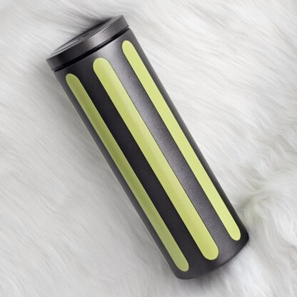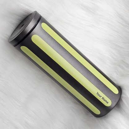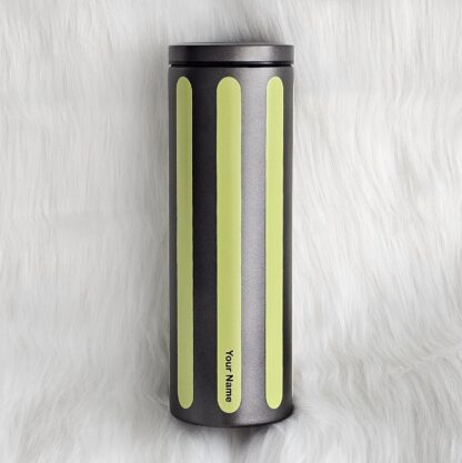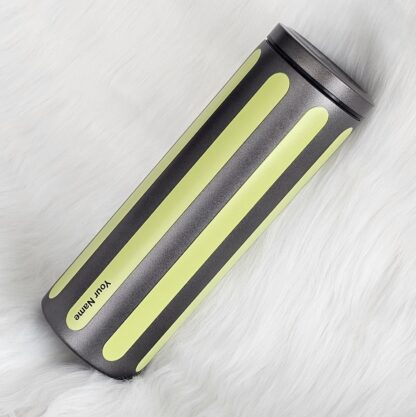 แก้วเก็บความเย็นสีดำ พาดลายเส้นตั้งสีเขียวมะนาว ใส่ชื่อตัวเอง (English) 600 ml.