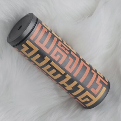 แก้วเก็บความเย็นสีดำ พาดลาย เผด็จการจงพินาศ สีส้ม ทูโทน 600 ml.