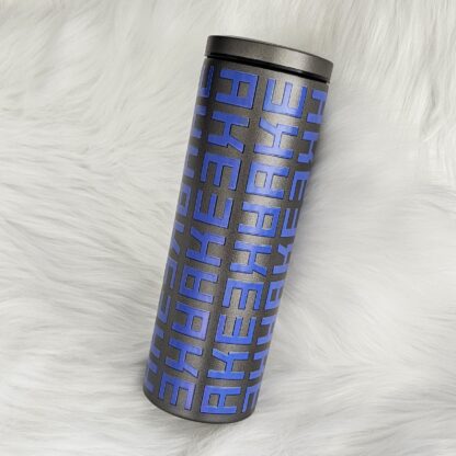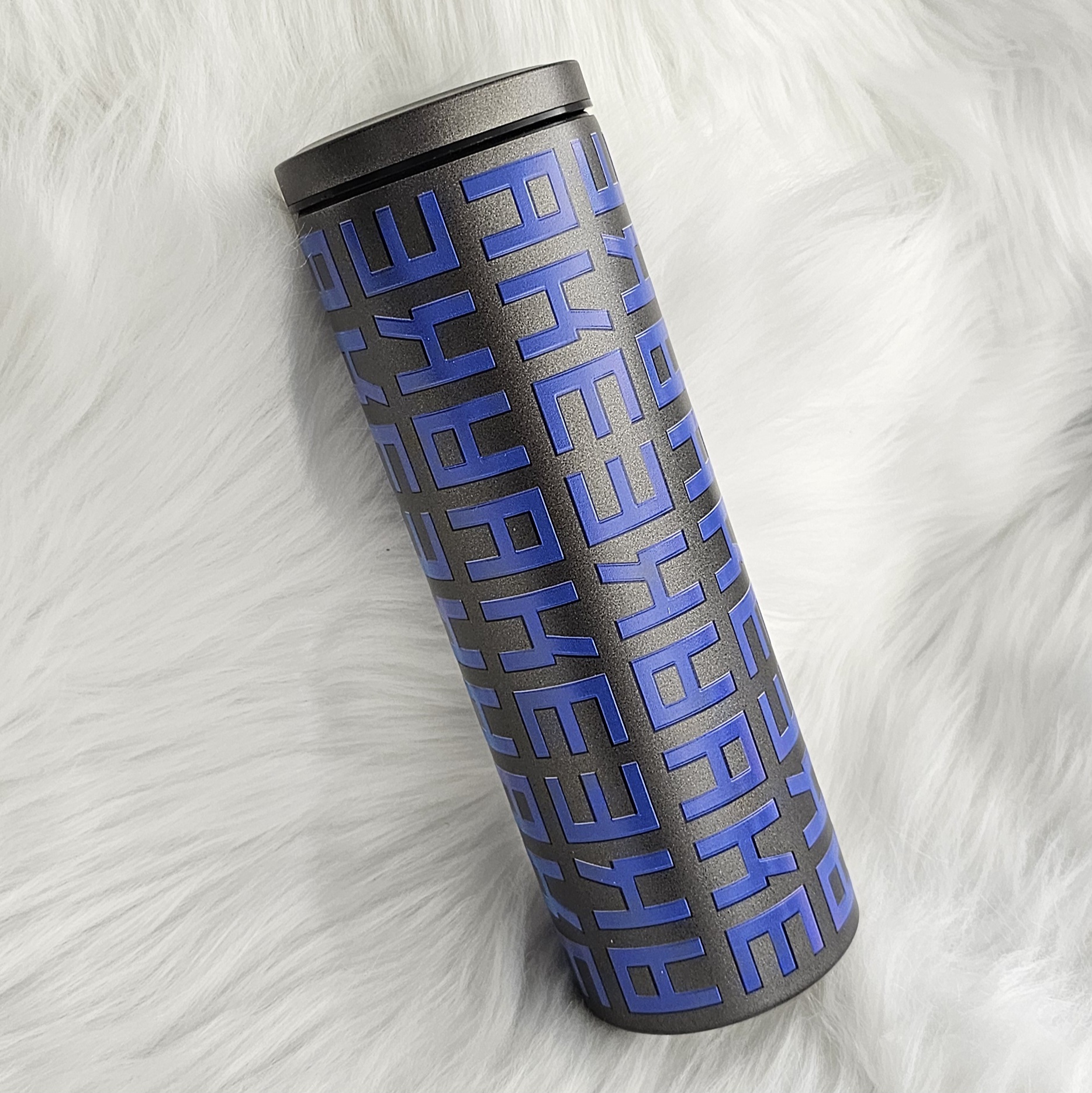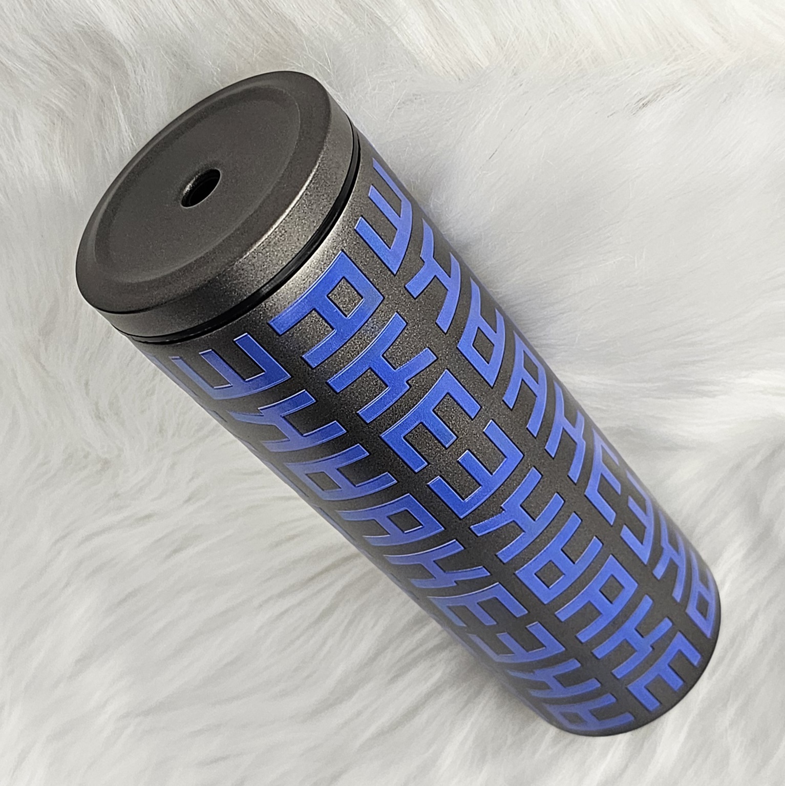 แก้วเก็บความเย็น Monogram ชื่อตัวเอง (English) แก้วสีดำ พาดลายสีน้ำเงิน 600 ml.