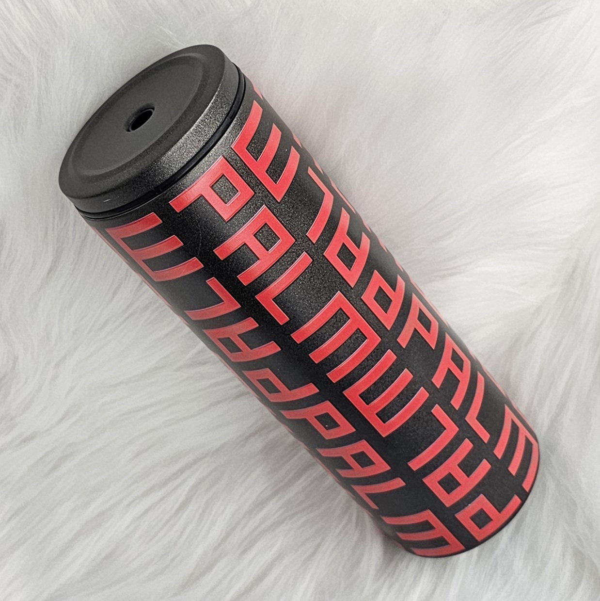 แก้วเก็บความเย็น Monogram ชื่อตัวเอง (English) แก้วสีดำ พาดลายสีแดง 600 ml.