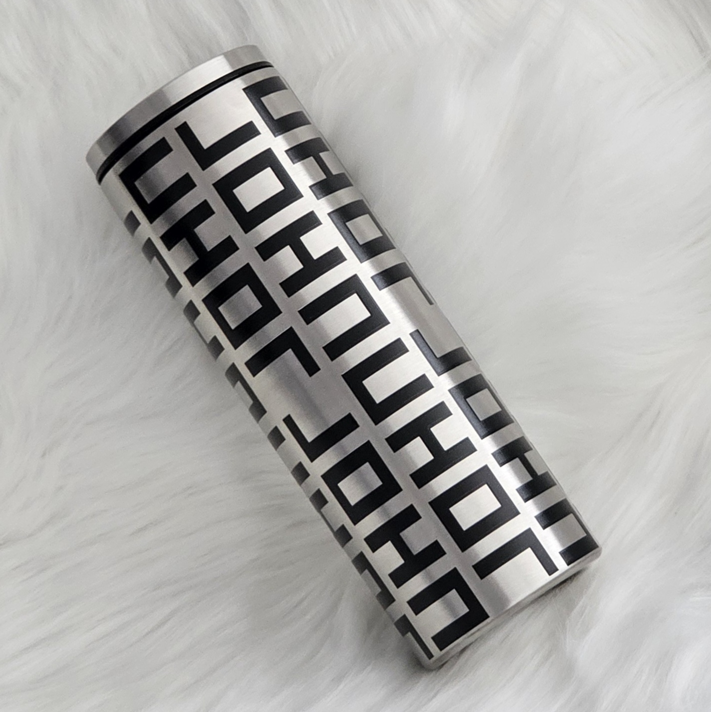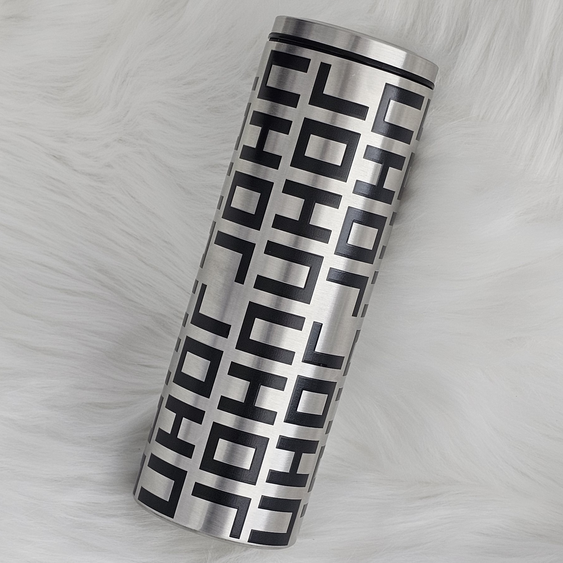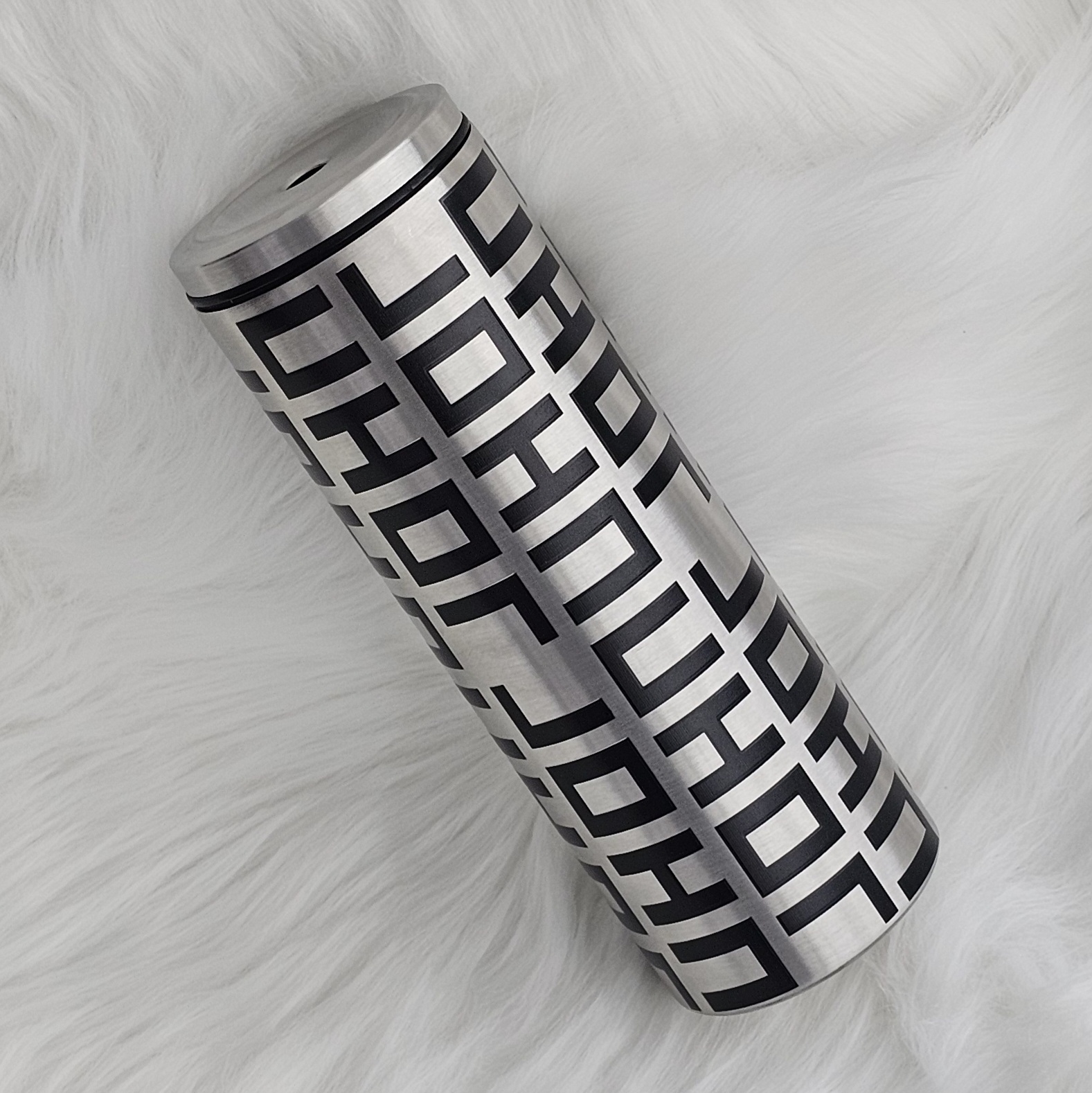 แก้วเก็บความเย็น Monogram ชื่อตัวเอง (English) แก้วสีเงิน พาดลายสีดำ 600 ml.