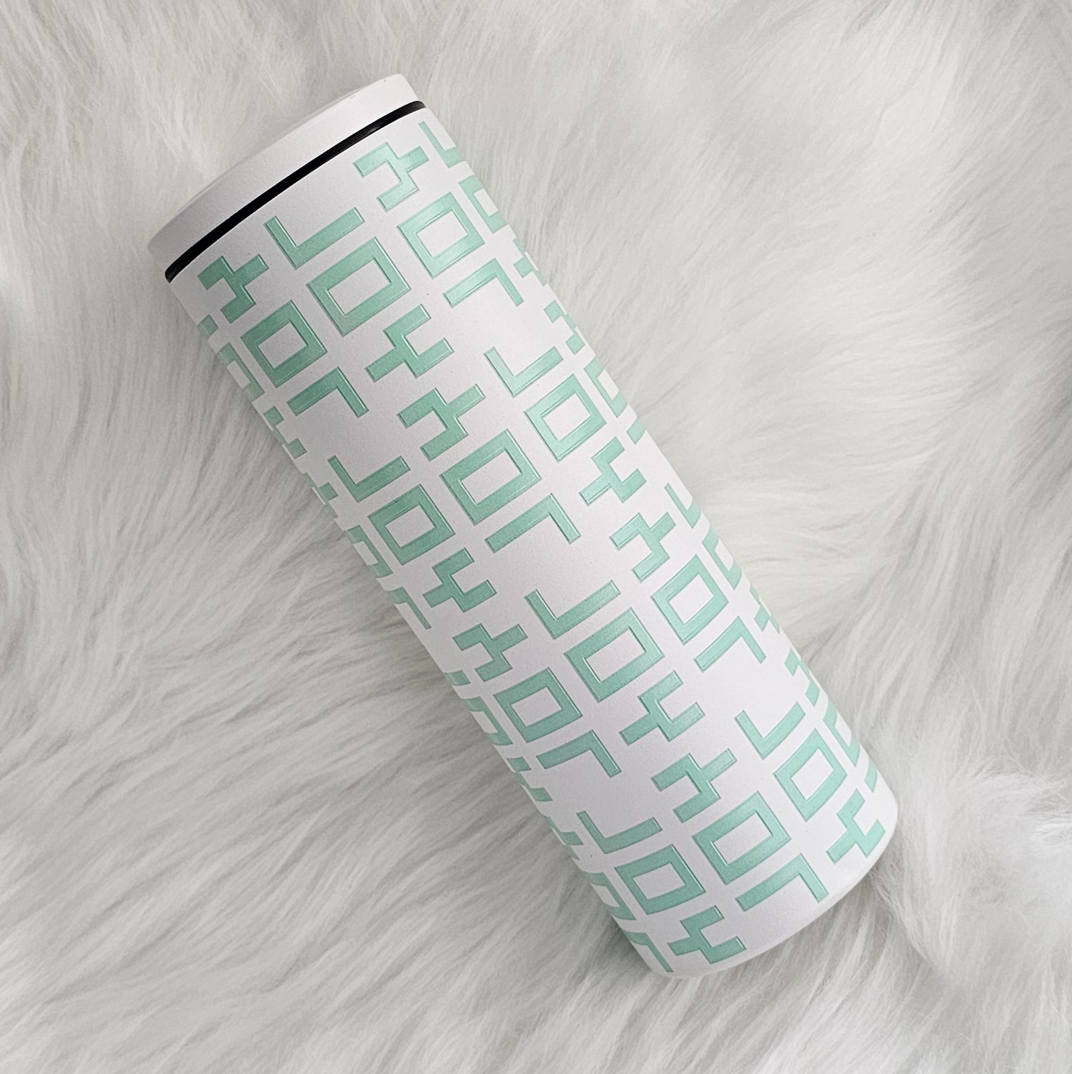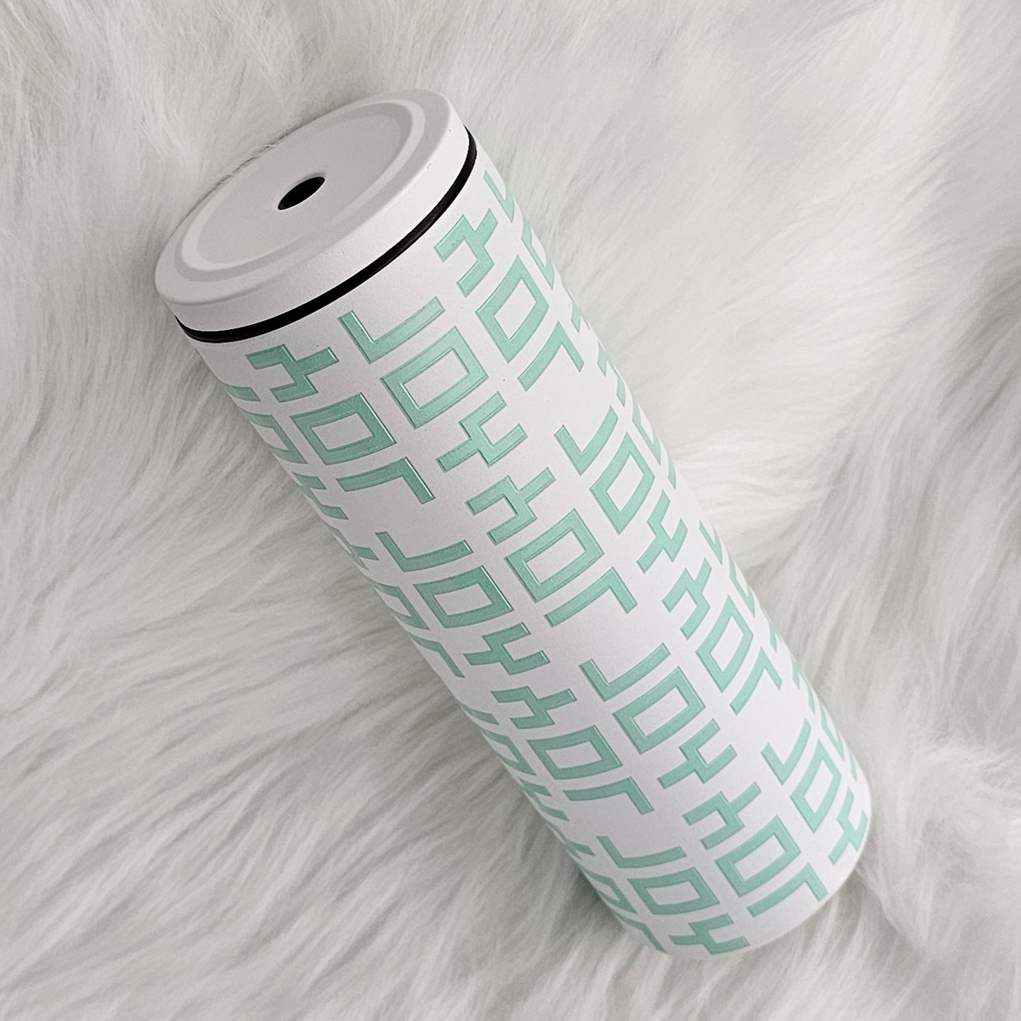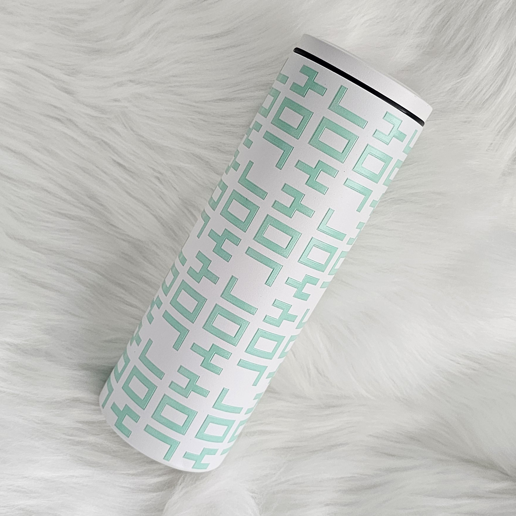 แก้วเก็บความเย็น Monogram ชื่อตัวเอง (English) แก้วสีขาว พาดลายสีมิ้นท์ 600 ml.