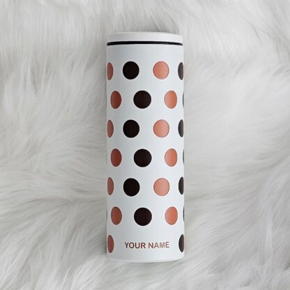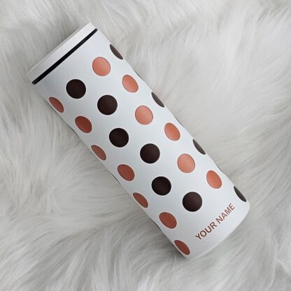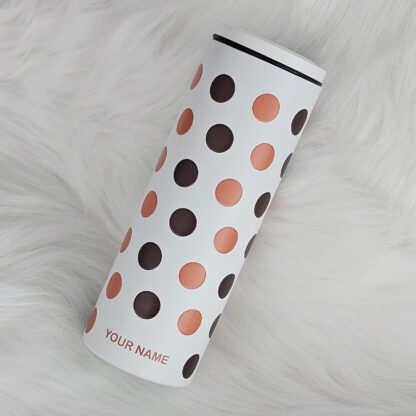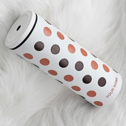 แก้วเก็บความเย็น ลายจุด ใส่ชื่อตัวเอง (English) แก้วสีขาว พาดลายสีช็อกชาไทย 600 ml.