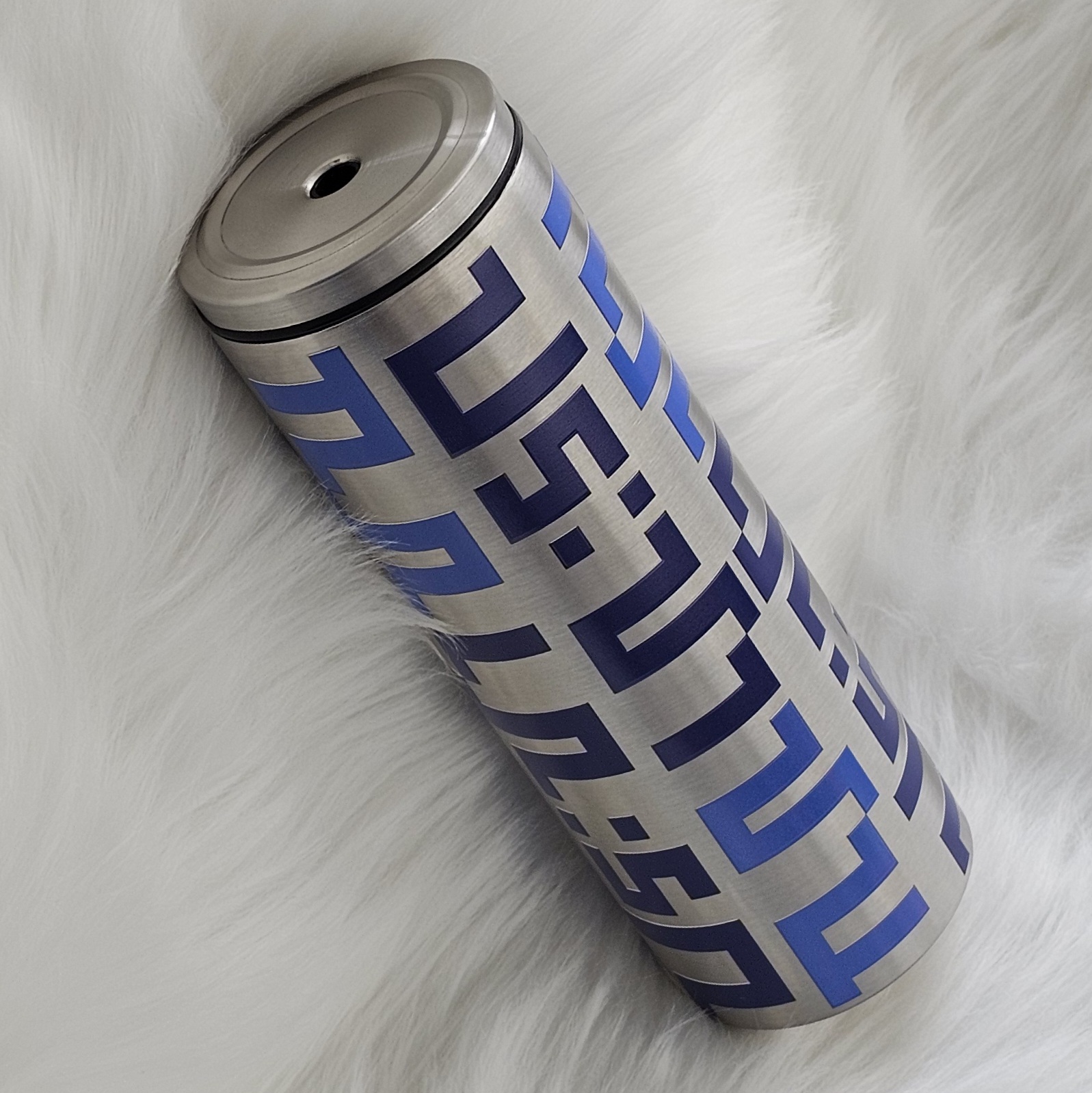 แก้วเก็บความเย็นสีเงิน พาดลายประชาชน น้ำเงินทูโทน 600 ml.