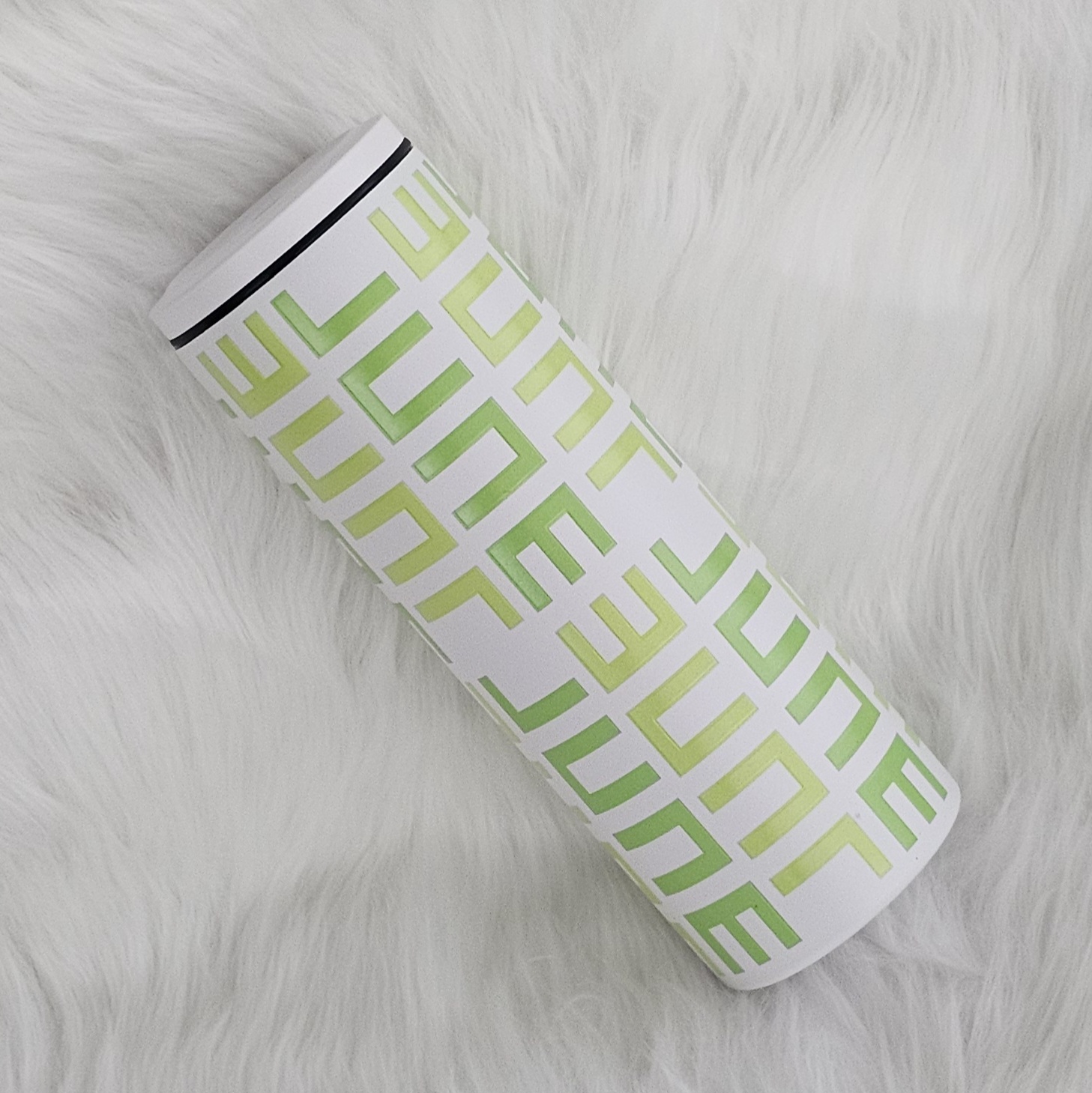 แก้วเก็บความเย็น Monogram ชื่อตัวเอง (English) แก้วสีขาว พาดลายสีซุปเปอร์เลม่อนทูโทน 600 ml.