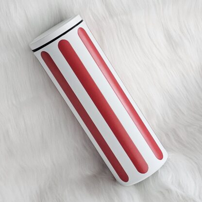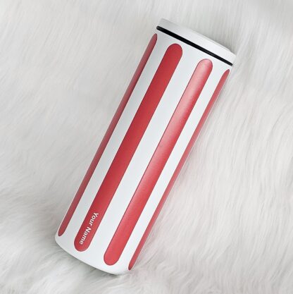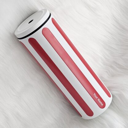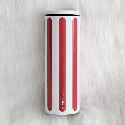 แก้วเก็บความเย็นสีขาว พาดลายเส้นตั้งสีแดง ใส่ชื่อตัวเอง (English) 600 ml.